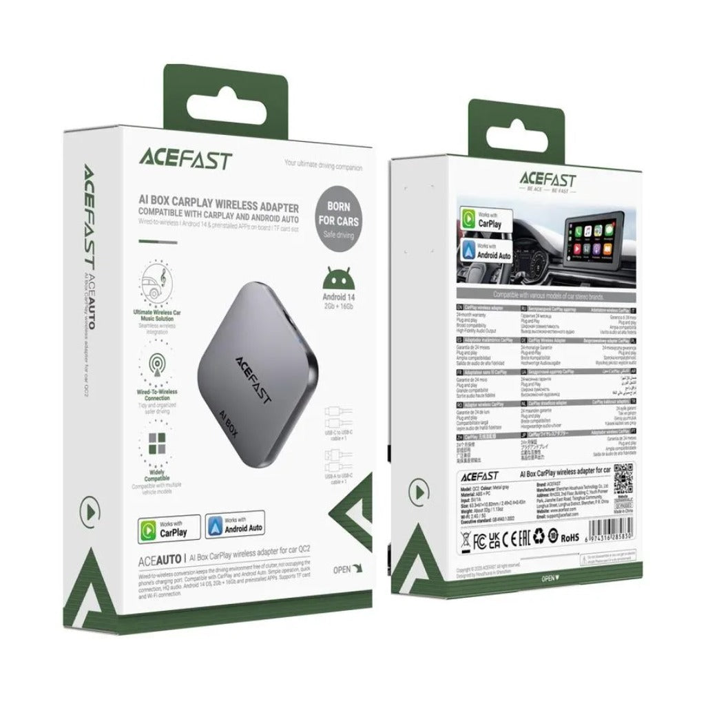 Acefast QC2 Wireless CarPlay/Android Auto AI Box - Grey
