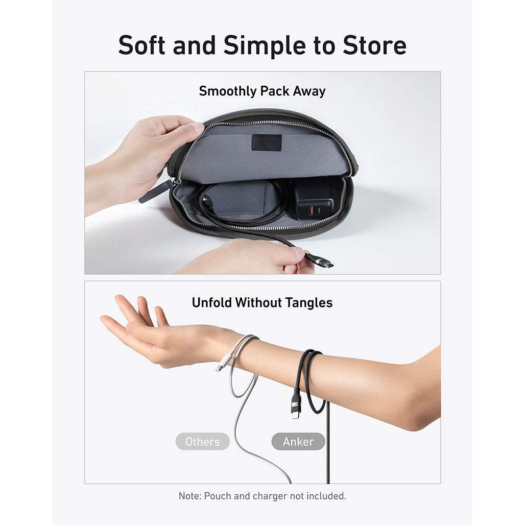 Anker USB-C to USB-C Cable (6 ft, 240W, Upcycled-Braided), silicone cord organizer, welcome guide.