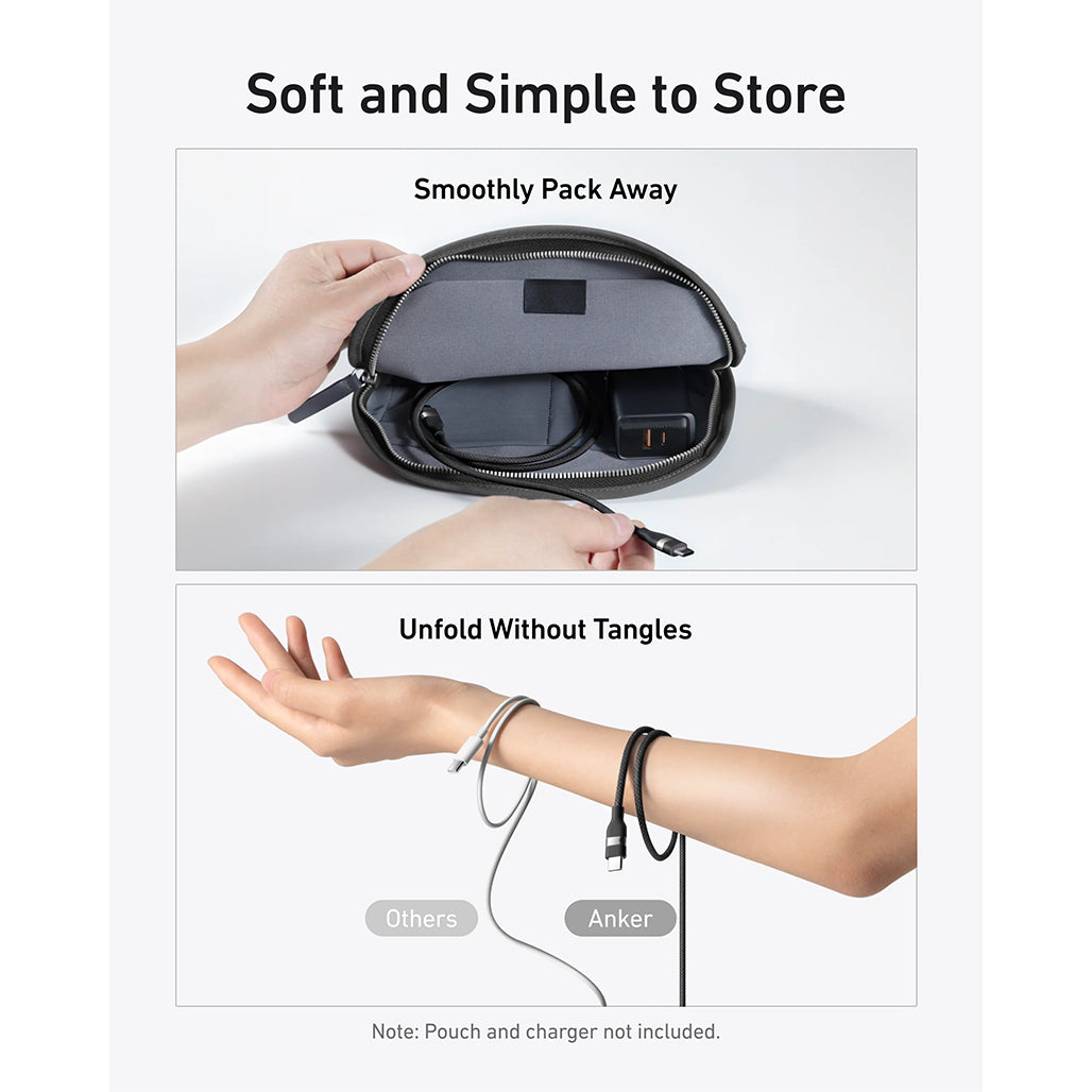 The Anker USB-C to USB-C Cable is engineered for extreme performance, durability, and sustainability. With 240W Power Delivery support, this cable delivers super-fast charging for laptops, tablets, and smartphones—capable of powering a 16-inch MacBook Pro to 50% in just 26 minutes. Its eco-friendly braided design, crafted from upcycled materials, offers a soft touch, tangle-free use, and long-lasting flexibility.