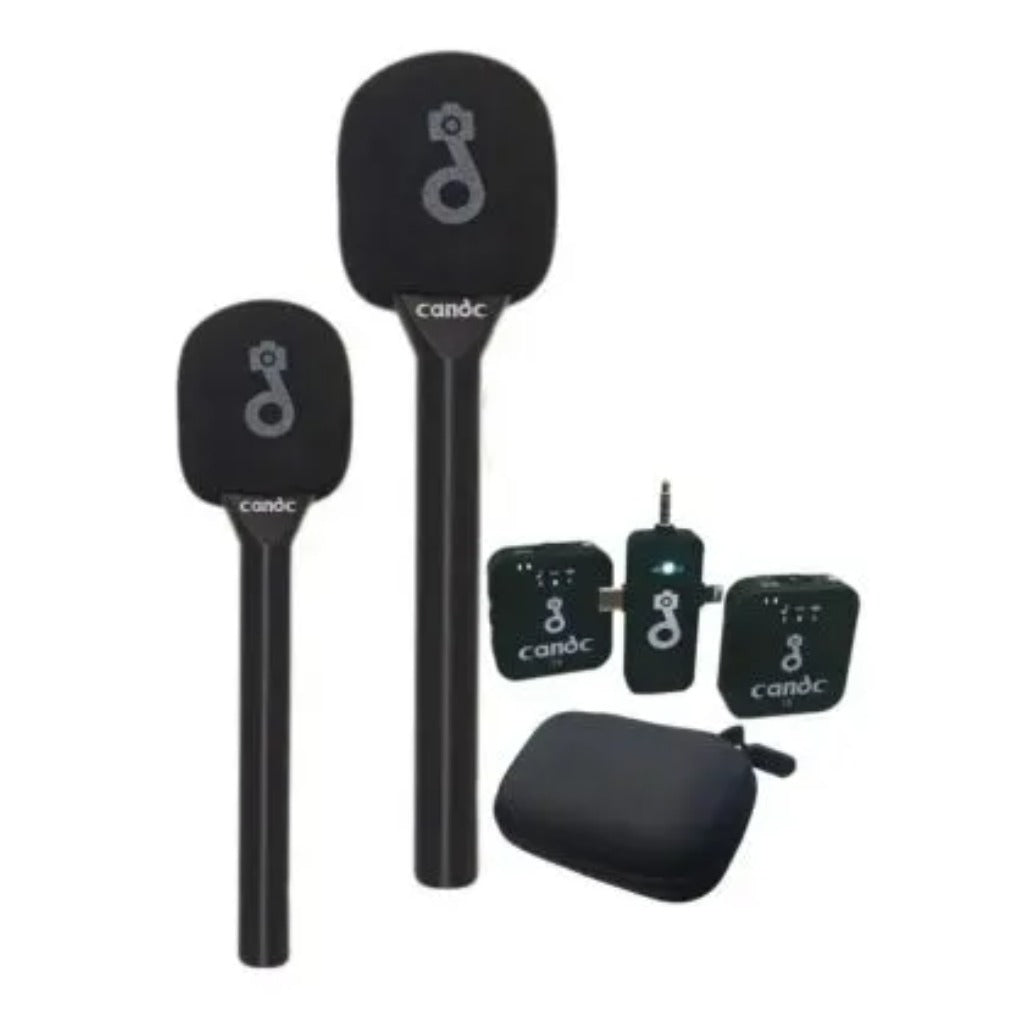 Record professional audio with the Candc Dual MIC Wireless Interview Microphone, a wireless microphone system designed for interviews, content creation, podcasts, and live broadcasting. With 2 transmitters and 1 receiver, it is made for capturing conversations between two speakers.