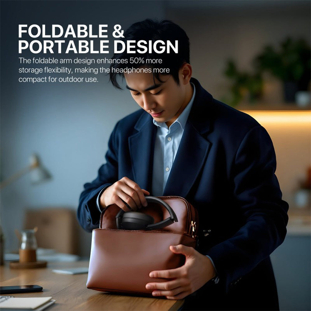 Engineered with 40mm driver units, the WH02s GO AIR produces rich, balanced audio with deep bass and crisp highs. The foldable swivel design makes them compact and travel-friendly, while the soft around-ear cushions provide hours of comfort. A long playback time of up to 13 hours ensures you stay connected to your music, podcasts, or calls all day long.