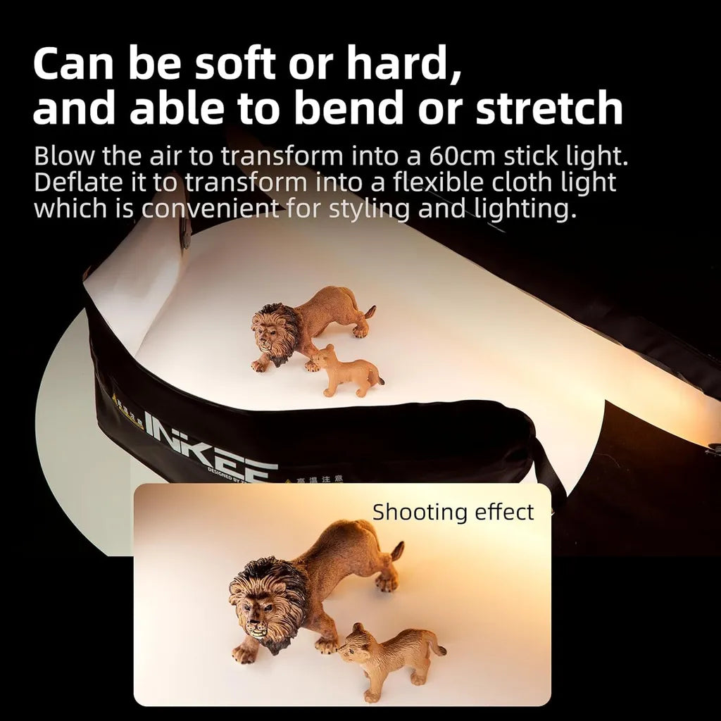 Flexible & Transformable Design – Inflate for a 60 cm stick light or deflate for a soft, flexible cloth light.