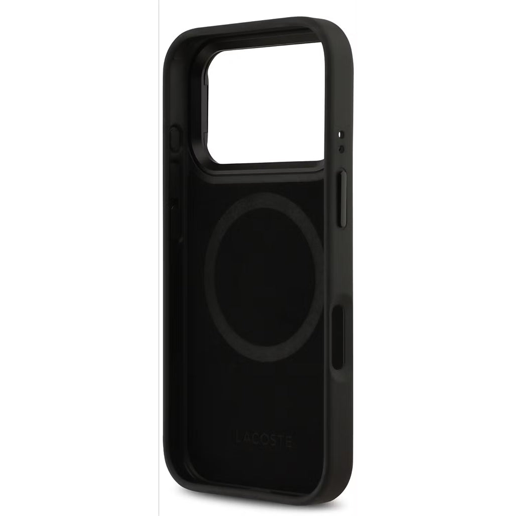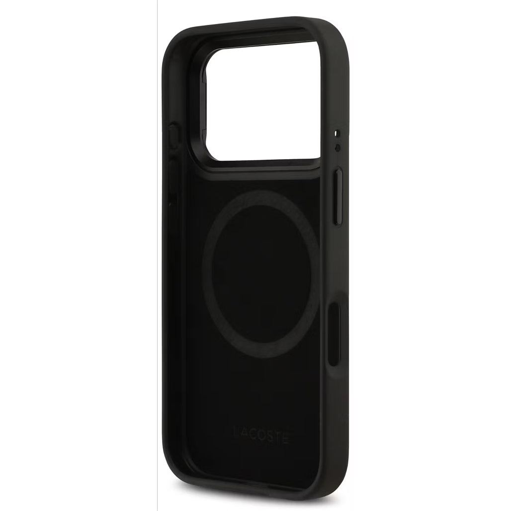 Featuring the Lacoste Nomogramme logo, it embodies the brand’s refined aesthetic and distinctive heritage. Built with MagSafe compatibility, the case supports effortless wireless charging and quick attachment to MagSafe accessories.