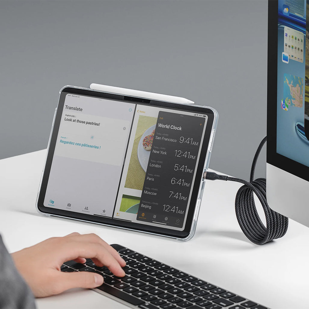 Its versatile folding folio allows for multiple angles—perfect for typing, reading, sketching, or streaming. A dedicated Apple Pencil slot supports wireless charging (Apple Pencil Pro and Apple Pencil 2) with an integrated magnetic flap to prevent scratches and loss. The auto wake/sleep function makes daily use more convenient and energy-efficient.