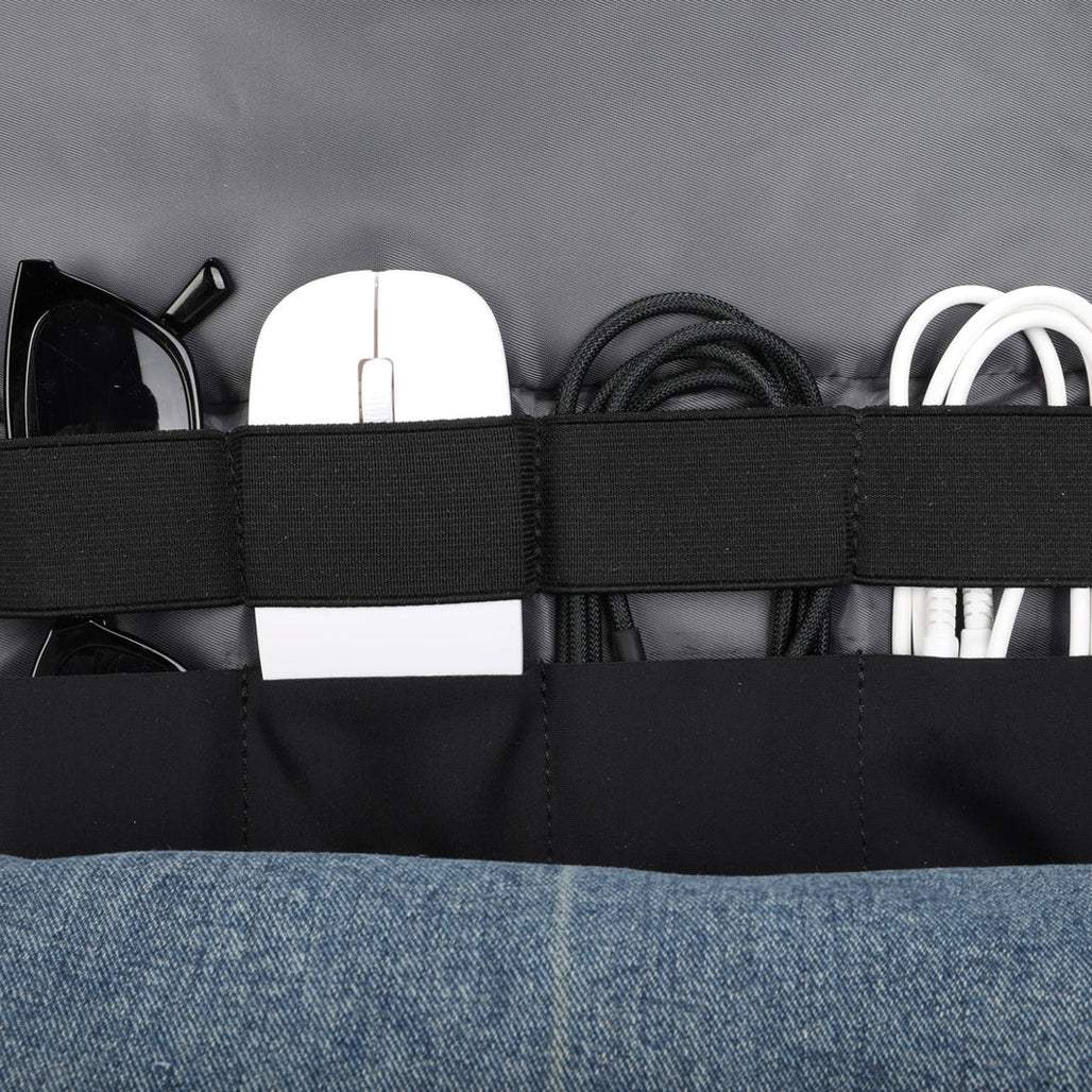 Integrated external USB ports offer a convenient way to charge your devices on the go. Simply connect your power bank inside (not included), and stay connected wherever you are.