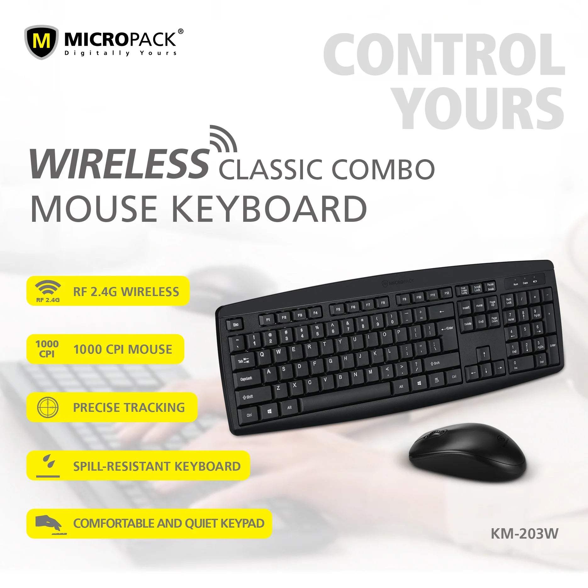 Micropack KM-203W Spill Resistant Wireless Keyboard and Mouse Combo - Arabic
