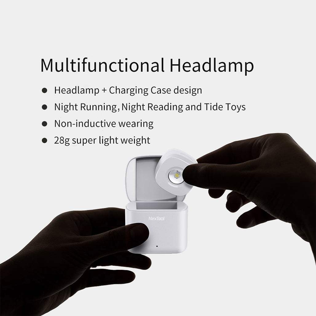 NexTool Night Walk Headlamp with Glow in the dark Features and Magnetic Charging Case- Grey