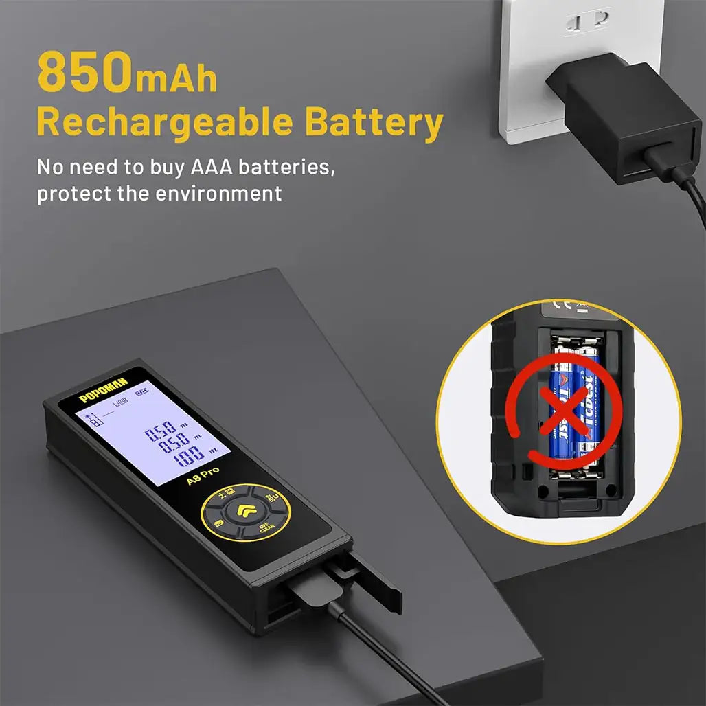 POPOMAN A8 Pro Laser Measure – 60m, Type-C, High Precision