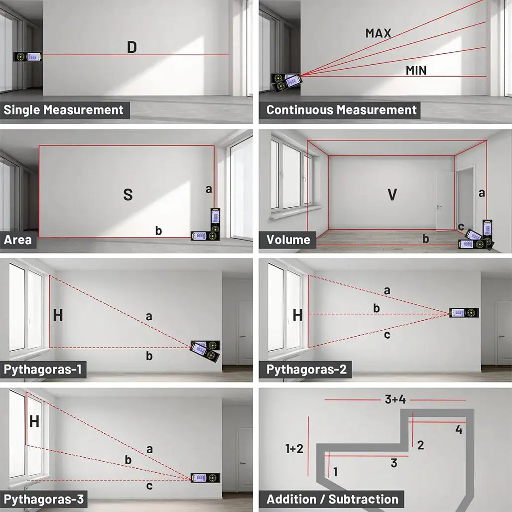 The POPOMAN A8 Pro Laser Measure is a compact and precise tool designed for professionals and DIY enthusiasts. With a measuring range of up to 60 meters and an accuracy of ±2mm, it ensures reliable measurements for various applications.