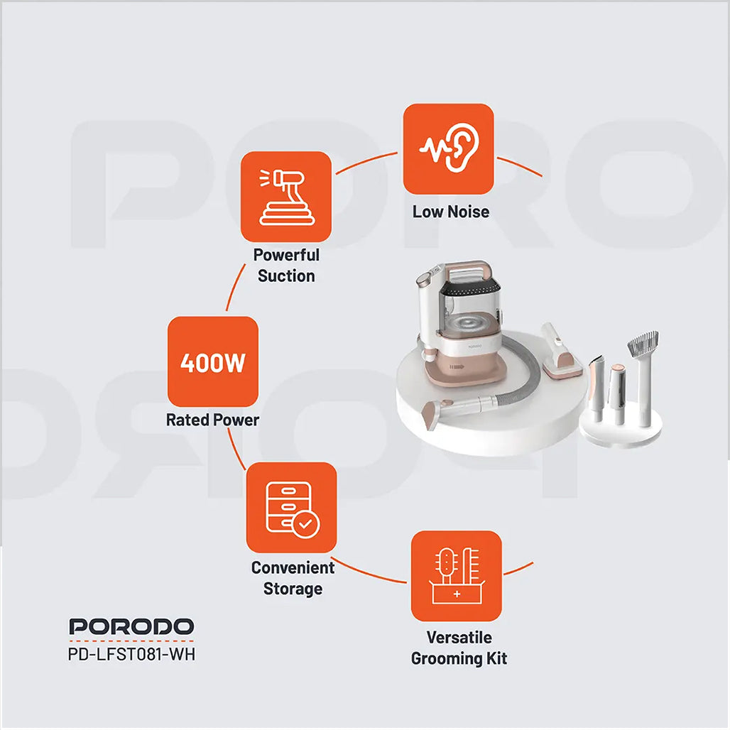 Porodo Lifestyle Pet Grooming Kit Trimmer & Vacuum – White - PD-LFST081-WH
