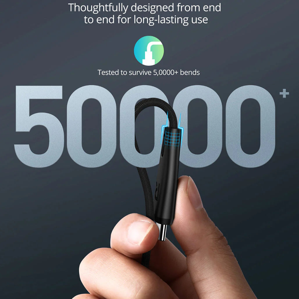 Durability is at the heart of RP-CB1037: it’s rated for 50,000+ bends, so daily plugging and unplugging, travel, and long-term use stay dependable. This cable is a solid choice for anyone needing a reliable USB-C charging and data cord that stays strong under heavy use.