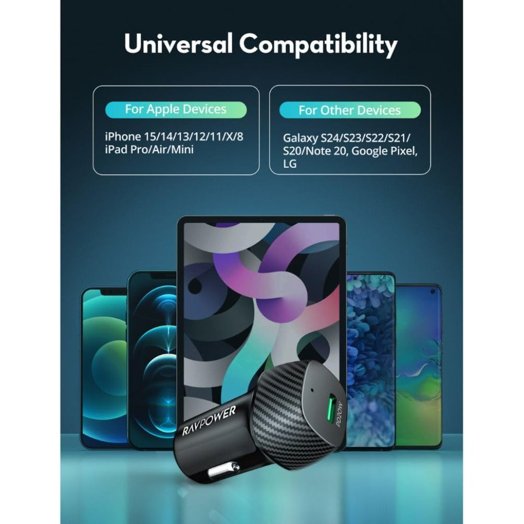 Power your devices on the go with the RAVPower RP-VC1017 PD 20W USB-C Fast Car Charger. Delivering up to 20W of USB-C PD power, this compact charger fuels your essentials quickly while staying out of the way in your car’s power socket. Its slim, lightweight design fits neatly into most vehicles, so you can keep devices charged without clutter.