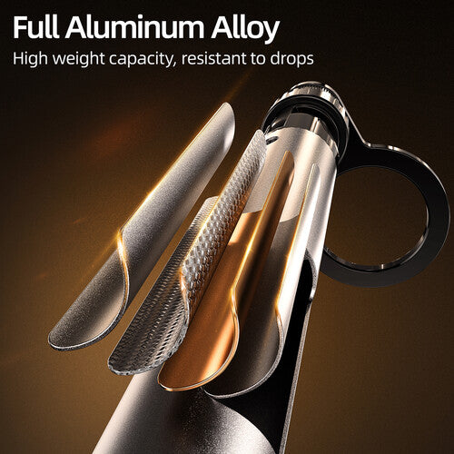 The MagSafe-compatible mount offers a secure hold for iPhone 12 and later models, ensuring quick attachment and stability during recording sessions. For non-MagSafe phones, an adhesive magnetic ring is included, making the stand universally compatible.