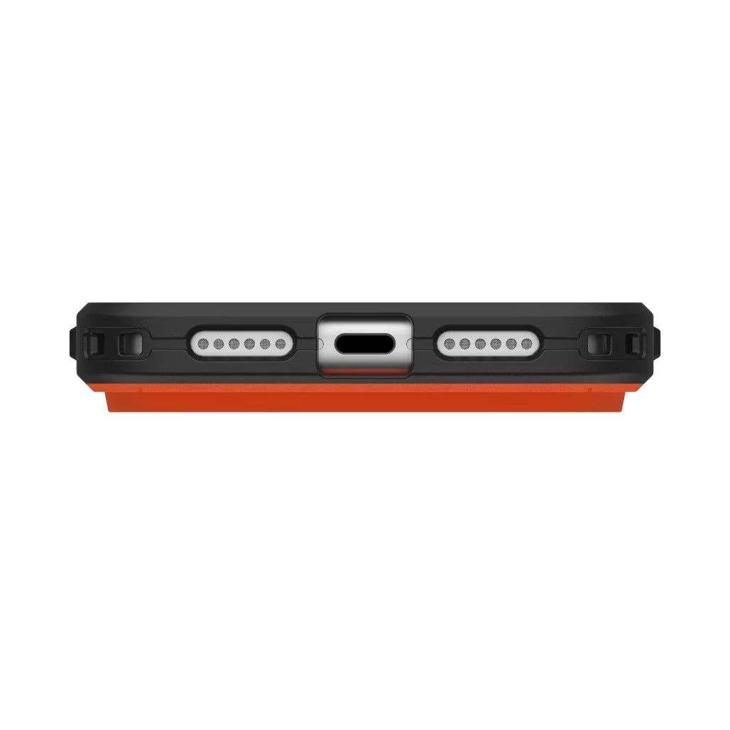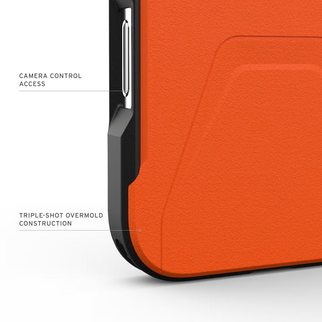 Discover the UAG Civilian MagSafe Case for iPhone 17 Pro and 17 Pro Max. This online-only exclusive comes in a bold orange, pairing minimalist style with rugged protection. Its ultra-thin profile houses a triple-shot overmold and a hex cushioning core to deliver serious drop defense, while a raised screen edge guards against scratches on flat surfaces and the textured anti-slip grip helps you keep a secure hold. Built-in MagSafe compatibility makes alignment with chargers and accessories effortless, and oversized tactile buttons provide crisp, responsive control for every press.