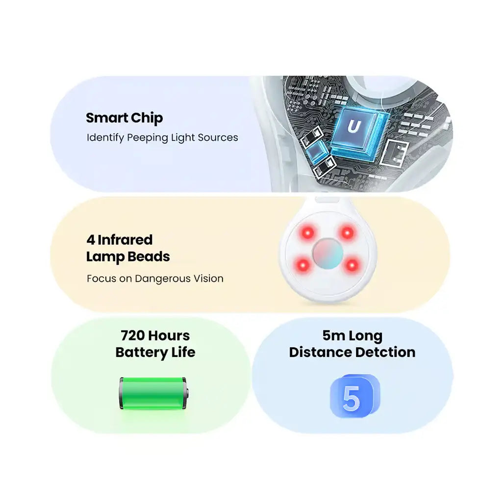 The UGREEN Camera Lens Detector (model LP793‑35579) is a compact and powerful anti-peeping tool that protects your privacy from hidden pinhole cameras. With its built-in LED light and color filter, it highlights camera lenses instantly, ensuring quick detection. Slim, durable, and rechargeable, it’s easy to carry—perfect for travel, rentals, hotel stays, offices, or any space where privacy matters.