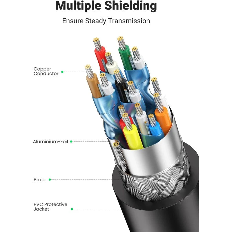 Reliable Build Quality: Gold-plated connectors, tinned copper core, multi-layer shielding, and durable PVC jacket.