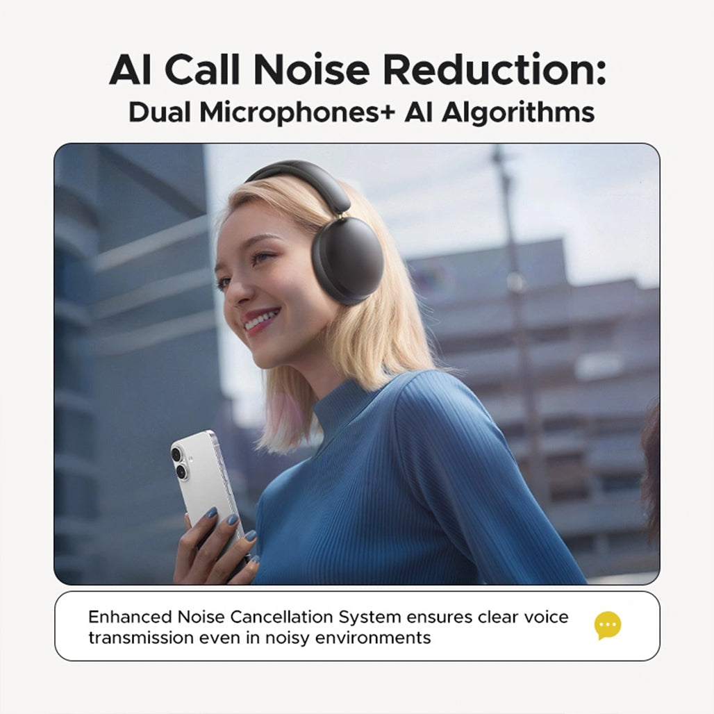 This headset also focuses on clarity and convenience, offering AI-assisted noise reduction for calls, customizable EQ sound modes, and impressive 80-hour battery endurance for non-stop listening. Whether for work, gaming, travel, or music, it provides comfortable all-day performance and consistent sound quality. Available in Black and White.